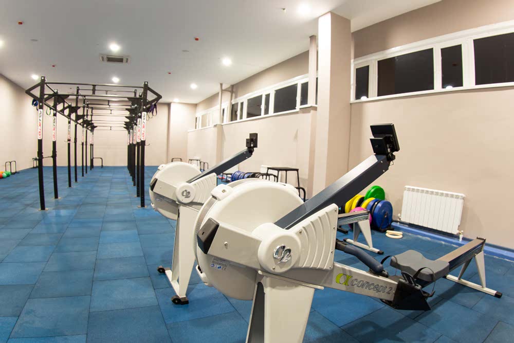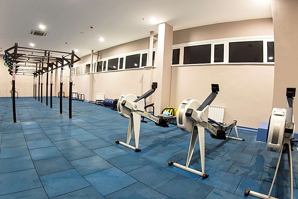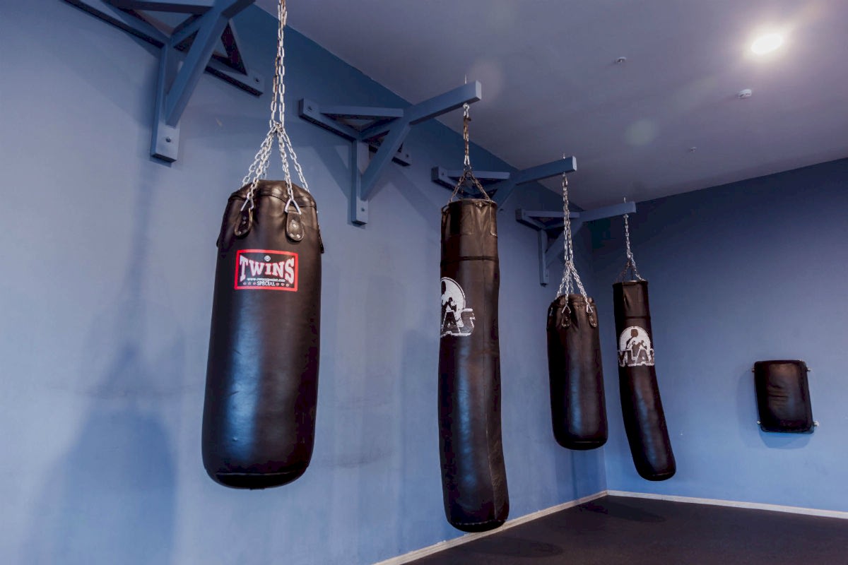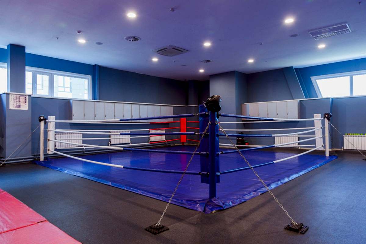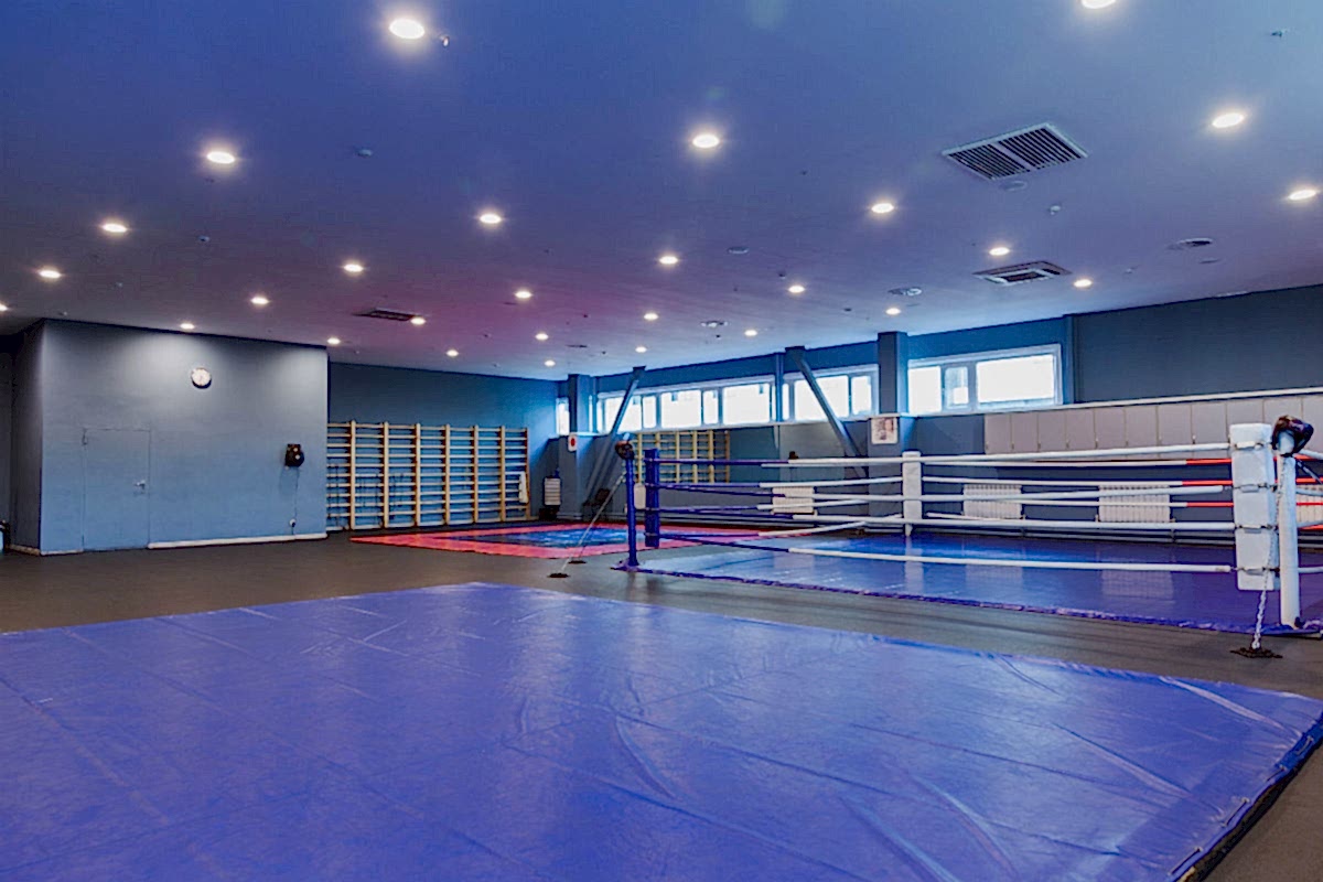 • Три тренировочные зоны - боксерский ринг, борцовский ковер , ряд боксерских груш . Оборудование : боксерский ринг 7,2*7, 2*1м, ковер борцовский 8*8, мешки , груши, лапы, макивары, настенные подушки, тренировочные накладки для карате и рукопашного боя, перчатки, шлемы тренировочные, скакалки, платформы с пневмогрушей, шведские стенки, резиновые натяжители, медболы, бодибары.